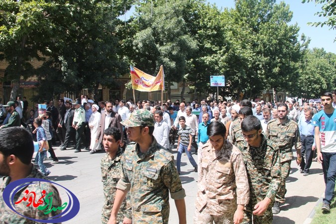 نهاوندی ها با سردادن شعارهای «با اتحاد ملت فلسطین، آزاد گردد قبله مسلمین»، «مرگ بر اسرائیل»، «مرگ بر آمریکا»، «القدس لنا» و «مرگ بر آل سعود» حمایت خود را از مردم مظلوم فلسطین نشان دادند.