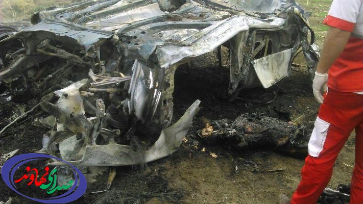 یک مرد و یک بچه در میان شعله های آتش خودرو سوختند+تصاویر