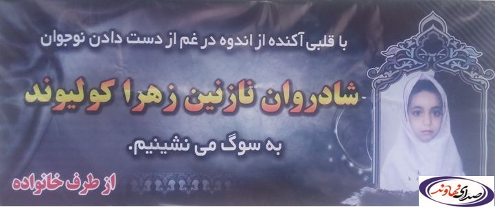 به گزارش خبرنگار صدای نهاوند، ظهر روز شنبه، بعد از تعطیل شدن مدرسه ابتدایی مائده، دانش آموز نازنین زهرا کولیوند هفت ساله کلاس اول ابتدایی این مدرسه هنگام پیاده شدن از سرویس مدرسه(خودرو مینی بوس) در مقابل منزلشان واقع در خیابان رسالت (جنب کمیته امداد امام خمینی(ره) و هنگامی که قصد عبور از جلوی مینی بوس را دارد، زیر خودروی فوق رفته و بعلت رد شدن لاستیک مینی بوس از روی سرش در جا جان خو را از دست می دهد.