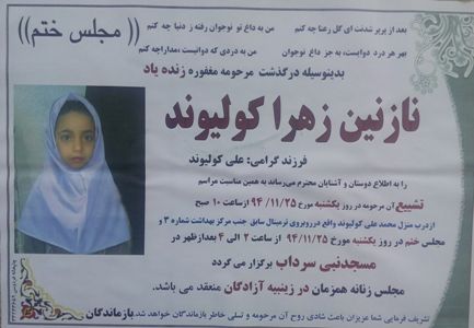 چرخ های بی رحم سرویس یکی از مدرسه های ابتدایی در شهر نهاوند، نازنین زهرا را برای همیشه از پدر و مادرش جدا کرد.