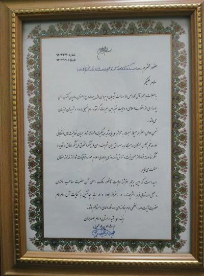 نماینده ولی فقیه و امام جمعه شهر همدان با اهدا لوح تقدیر از فرماندار شهرستان نهاوند قدردانی کرد.