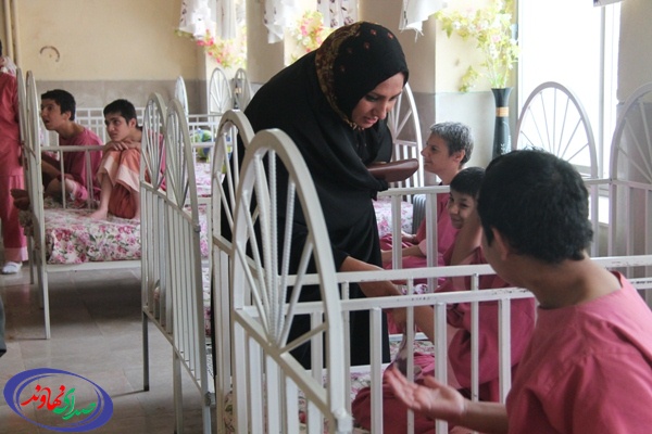 تابلوی مرکز را دیدم که روی آن نوشته شده بود” مرکز نگهداری معلولان دختر بالای ۱۴ سال حضرت زهرا(س) ” که به خوبی صاحباش آن را در واقعیت معنا کردند، چون مادری عاشق فارغ از تمام معلولیت هایش، فرزند را مهرگونه در آغوش می کشید و دست مادری را بر سرش می کشید.