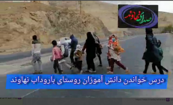 دانش آموزان دختر و پسر مدرسه روستای باروداب نهاوند برای دسترسی به اینترنت پرسرعت و استفاده از برنامه شاد مجبور هستند هر روز از جاده اصلی چهار خطه عبور کنند.