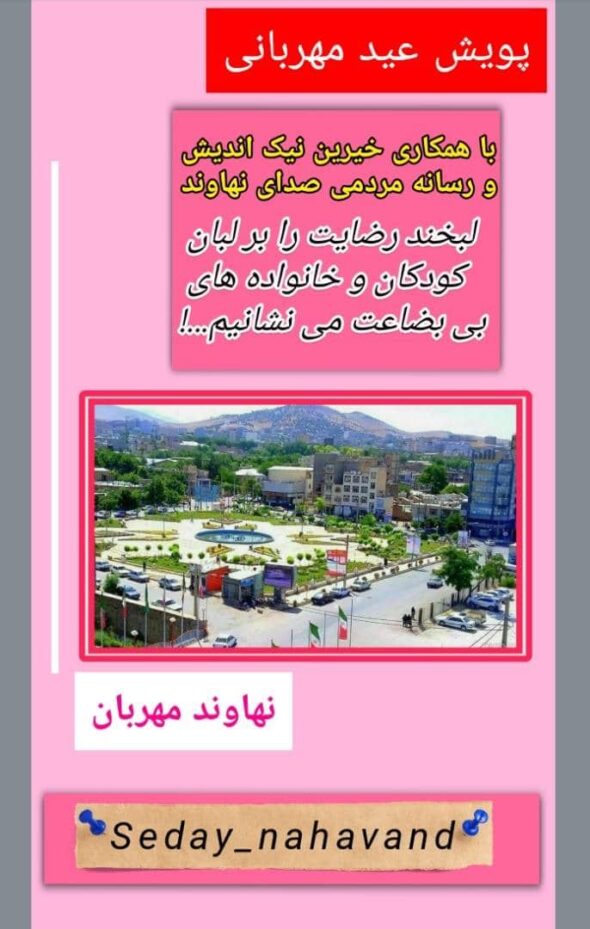 گفتنی است: #پویش_عید_مهربانی با هدف لبخند رضایت بر لبان کودکان و خانوادههای بیبضاعت با مشارکت خیرین و نیک اندیشان با همکاری رسانه مردمی صدای نهاوند در نظر دارد برای کودکان نیازمند لباس تهیه کرده و همچنین سبد کالا مناسب شب عید برای خانوادههای بیبضاعت تهیه کند.